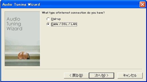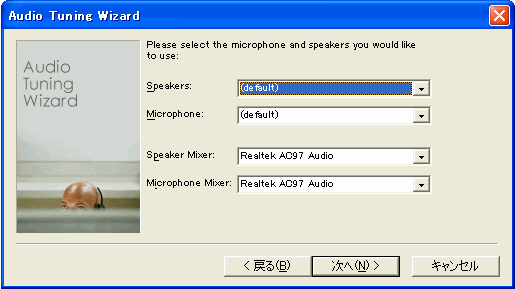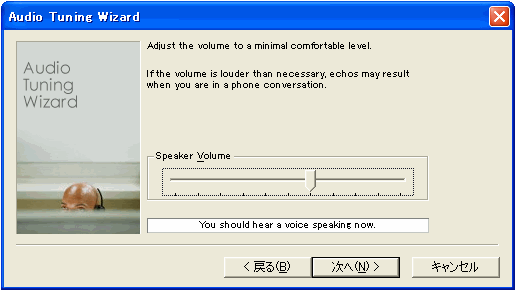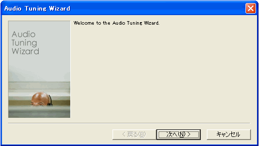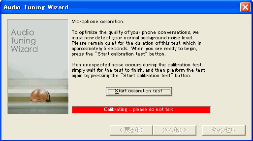 インストールが完了すると、下記のオーディオチューイングウィザードが起動されるので音響関係の設定を行います。マイクとスピーカ(ヘッドセット)を用意していなかった場合は一旦キャンセルして環境を準備してください。準備ができたら、X-Liteの画面上で右クリックすると「Audio
