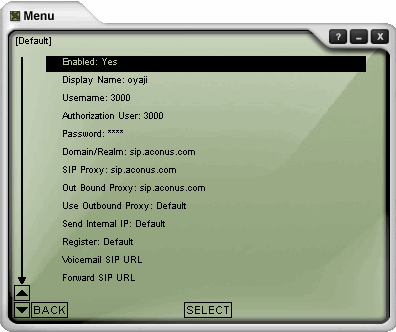 Menuが起動されるので、「System setting」->「SIP Proxy」->「Default」と選択すればこの画面になる。