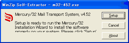 2. ダウンロードした Mercury Mail は実行形式のファイルなのでそのまま実行する。