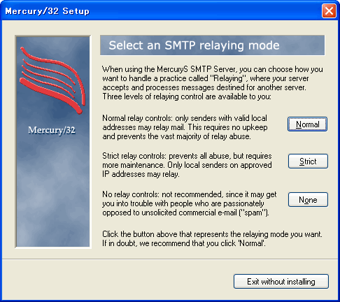12. SMTPのリレーモードを設定するが、ここは「Normal」を選択する。